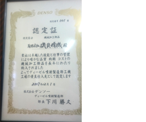 | 2007年(平成19年) | (株)デンソーより、優良仕入先の認定 |